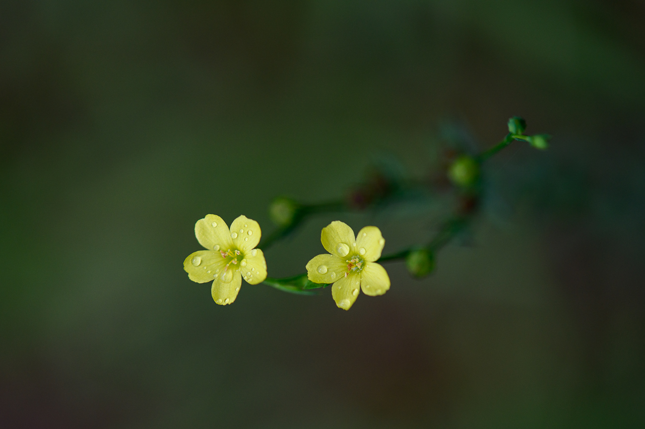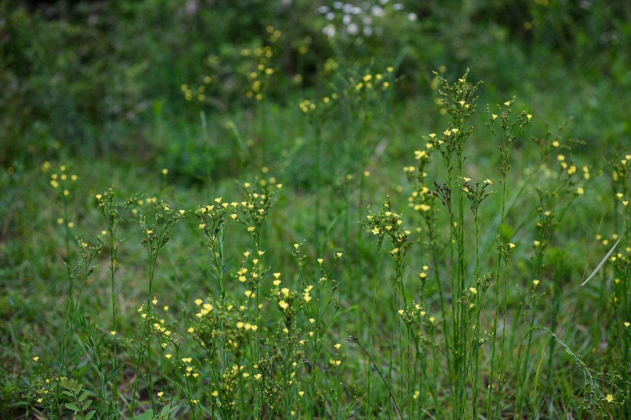 아마가 동양권에 처음 알려졌을 때, 마(麻)와 닮았다고 하여 "버금 아(亞)"字를 붙여 "아마(亞麻)"로 불렀을 것입니다. 오늘의 주인공인 개아마, 그것도 노랑개아마(Linum virginianum L.)는 아마와 같은 쥐손이풀목 아마과(Linaceae)에 속해 있으니 같은 종씨 집안 출신이라 해도 되겠지요. 다만 노랑개아마는 북미가 원산지인 것으로 보아 종소명 비르기니아눔virginianum은 아마도 미국 버지니아주의 명칭에서 따온 것 같습니다.
